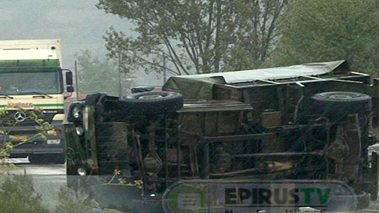 Τροχαίο ατύχημα με ανατροπή στρατιωτικού οχήματος (με την εμπλοκή ακόμη δύο οχημάτων) σημειώθηκε στη διασταύρωση της Λαψίστας, στα Ιωάννινα.