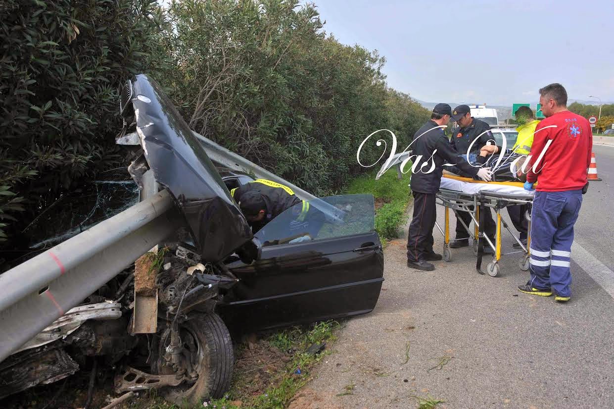 Κάτω από άγνωστες συνθήκες, ένα αυτοκίνητο εξετράπη της πορείας του, με αποτέλεσμα να προσκρούσει στις προστατευτικές μπάρες.