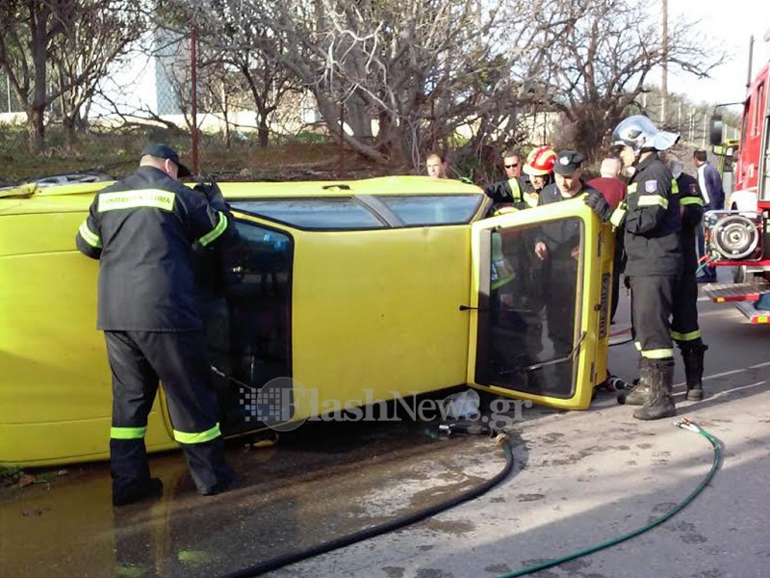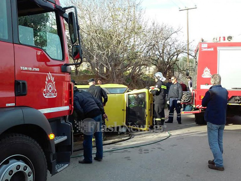 Ο οδηγός εγκλωβίστηκε στο όχημα και χρειάστηκε η επέμβαση της Πυροσβεστικής για τον απεγκλωβισμό του.