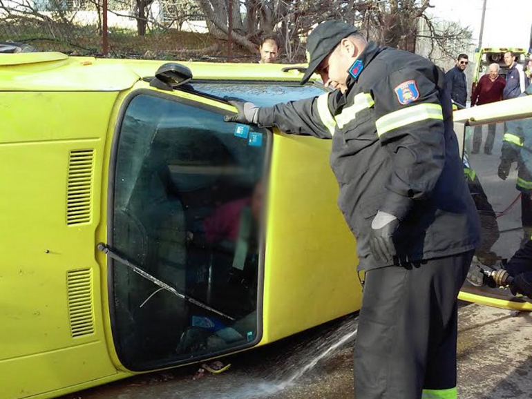 Ο οδηγός εγκλωβίστηκε στο όχημα και χρειάστηκε η επέμβαση της Πυροσβεστικής για τον απεγκλωβισμό του.