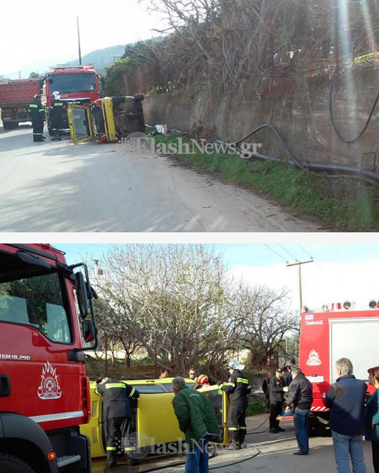 Το τροχαίο συνέβη όταν του Ι.Χ. αυτοκίνητο που οδηγούσε ένας ηλικιωμένος εξετράπη από την πορεία του, προσέκρουσε σε τοιχίο και ανετράπη.
