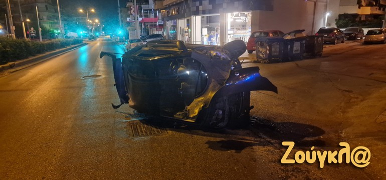 Έναν…. «πύραυλο» αναποδογυρισμένο στη λεωφόρο Αμφιθέας βρήκαν οι αστυνομικοί της Τροχαίας που κλήθηκαν τα ξημερώματα από κατοίκους και διερχομένους οδηγούς. Όπως φαίνεται και στις φωτογραφίες που εξασφάλισε η zougla.gr, το μικρό όχημα τύπου smart υπέστη σοβαρές υλικές ζημιές ενώ ο οδηγός – πιλότος τραυματίστηκε.