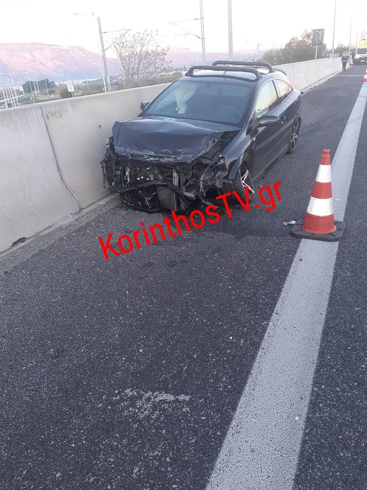 O οδηγός έχασε τον έλεγχο και το όχημα προσέκρουσε στις προστατευτικές μπάρες, με αποτέλεσμα να τραυματιστούν ελαφρά οι επιβαίνοντες και ο οδηγός του οχήματος. Μεταφέρθηκαν με ασθενοφόρα στο νοσοκομείο Κορίνθου για προληπτικούς λόγους.