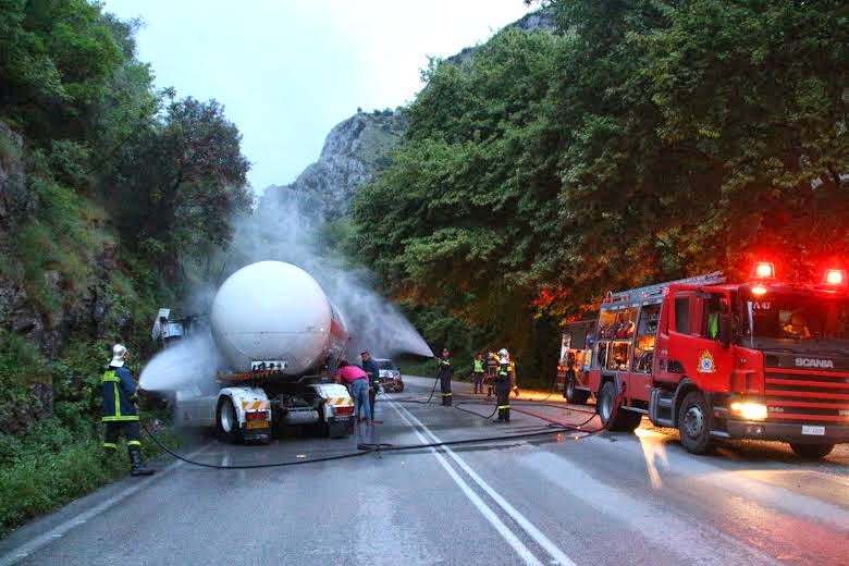 Από την Πυροσβεστική Υπηρεσία έχει στηθεί επιχείρηση, προκειμένου να αντιμετωπιστεί η διαρροή υγραερίου από το βυτιοφόρο όχημα. Οι πυροσβέστες ψύχουν με ειδικό υγρό το βυτίο.