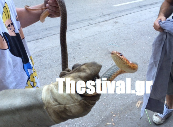 Πιθανότατα ήταν το ίδιο φίδι που εντοπίστηκε πριν από μια εβδομάδα στην περιοχή γύρω από το δημαρχείο της Θεσσαλονίκης. Ο ερπετολόγος που το «συνέλαβε» το μετέφερε σε δασική περιοχή και το απελευθέρωσε.