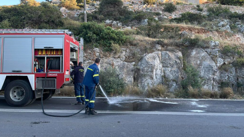 Ο οδηγός είχε τραύματα στην αριστερή πλευρά σε όλο το χέρι και μεταφέρθηκε στο Νοσοκομείο Αγίου Νικολάου με αυτοκίνητο του ΕΚΑΒ. Για περίπου μισή ώρα ο δρόμος παρέμενε κλειστός έως ότου η πυροσβεστική να καθαρίσει το οδόστρωμα από τα λάδια που είχαν διαρρεύσει από το όχημα.