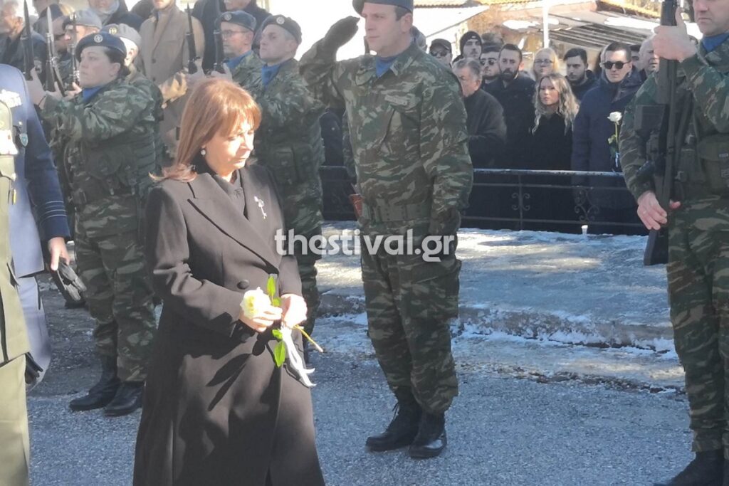 Το «παρών» στην κηδεία δίνουν η πρόεδρος της Δημοκρατίας Κατερίνα Σακελλαροπούλου, η οποία έφτασε κρατώντας ένα λευκό τριαντάφυλλο. ο πρωθυπουργός Κυριάκος Μητσοτάκης και ο υπουργός Εθνικής Άμυνας Νίκος Παναγιωτόπουλος.