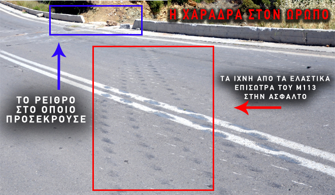 (Τα σημάδια πέδησης του στρατιωτικού οχήματος στην άσφαλτο)