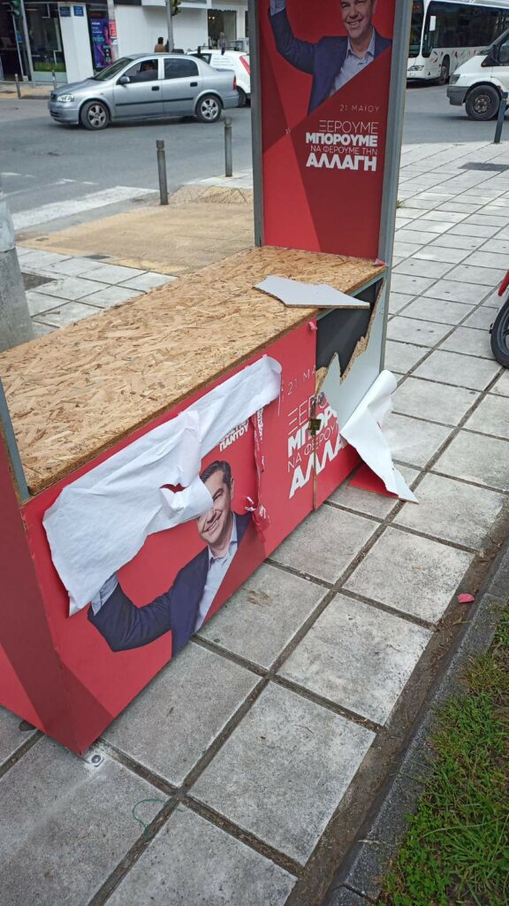 Βανδαλισμούς και φθορές στο εκλογικό περίπτερο του ΣΥΡΙΖΑ- Προοδευτική Συμμαχία στη συμβολή των οδών Δελφών με Μαρτίου, στην ανατολική Θεσσαλονίκη, προκλήθηκαν από αγνώστους τα ξημερώματα της Παρασκευής.