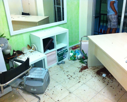 Ζημιές προκλήθηκαν και στο πολιτικό γραφείο της βουλευτού του ΠΑΣΟΚ, Ευαγγελίας Κουρουπάκη.
