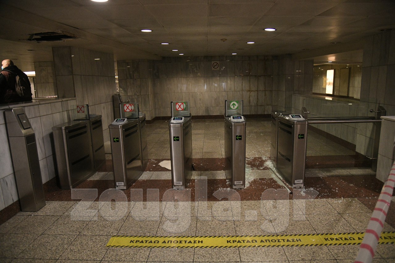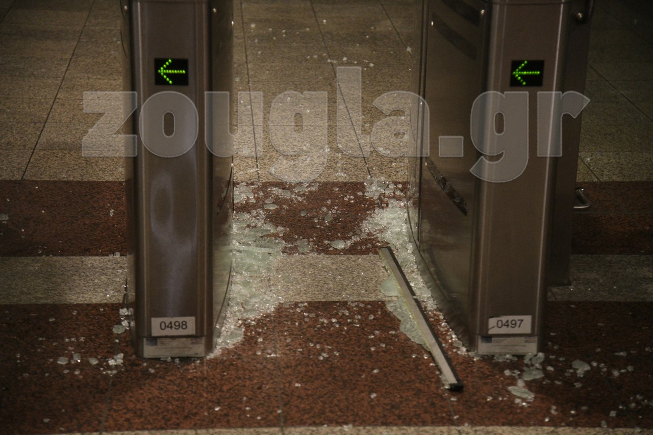 Μετά το πέρας της πορείας των καλλιτεχνών στο κέντρο της Αθήνας, κάποιοι προέβησαν σε βανδαλισμούς στον σταθμό μετρό της ομόνοιας.