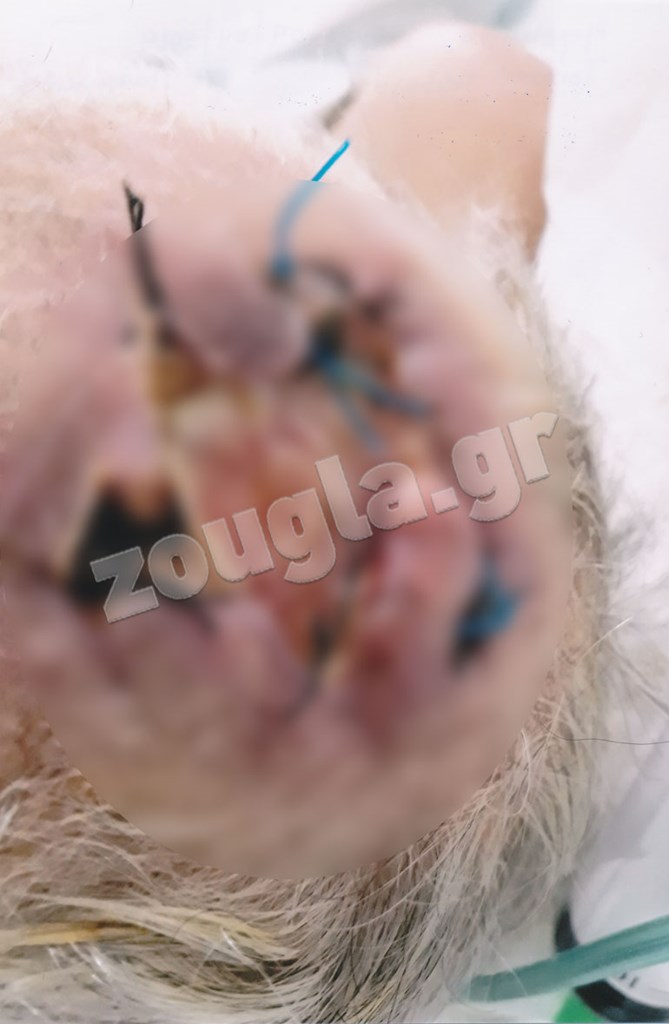 Έχει δεχτεί τραυματισμό στο πρόσωπο, φέρει αιματώματα και οιδήματα κυρίως κάτω από τα μάτια και τα ζυγωματικά.