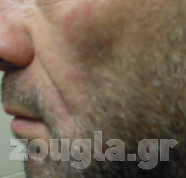 (Μώλωπες από τα χτυπήματα στο πρόσωπο του συνεργάτη μας)