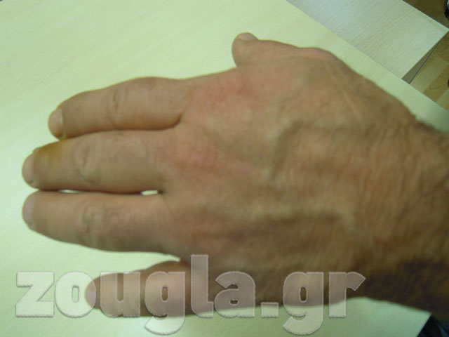 (Το οίδημα στο χέρι από τα χτυπήματα)