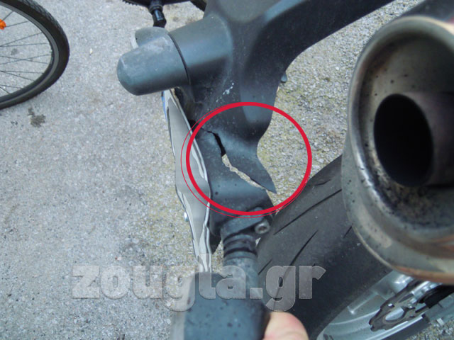 (Η ζημιά που υπέστη η μοτοσυκλέτα μετά την πτώση της)