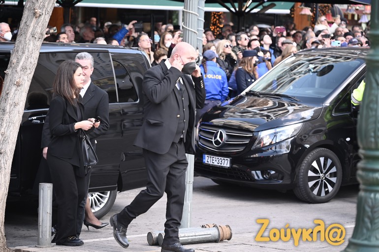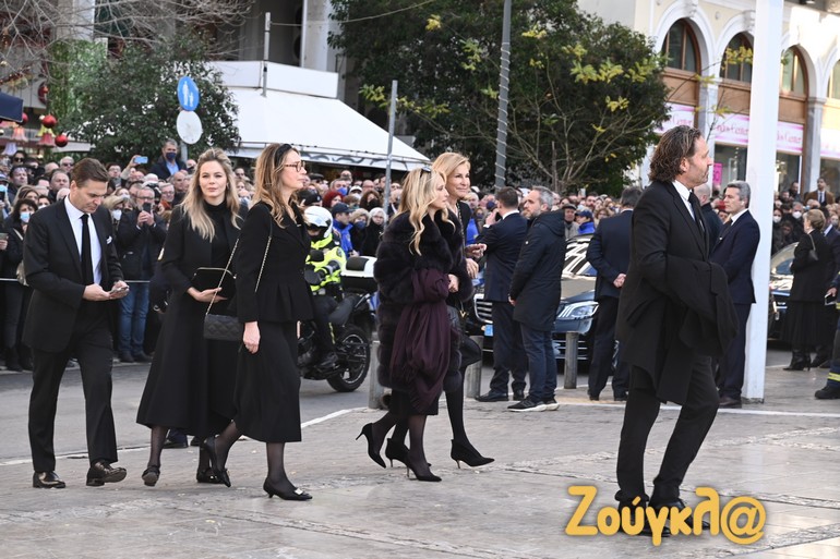Στον Ιερό Καθεδρικό Ναό των Αθηνών μεταφέρθηκε η σορός του τέως βασιλιά Κωνσταντίνου. Παρόντες, οι γιοί του, Παύλος, Νικόλαος και Φίλιππος. Μπροστά από το φέρετρο είναι τοποθετημένα τα παράσημα και το ολυμπιακό μετάλλιο του εκλιπόντος.