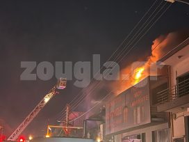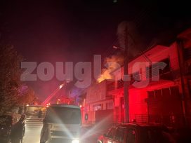 Για την κατάσβεση της φωτιάς επιχείρησαν 14 πυροσβέστες με πέντε οχήματα καθώς και ειδικό βραχιονοφόρο όχημα.