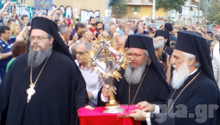 Στην Ιερά Οδό μπροστά από το Δημαρχείο Αιγάλεω πραγματοποιήθηκε η υποδοχή του Ιερού Λειψάνου από τον Ιερό Κλήρο και τον λαό.