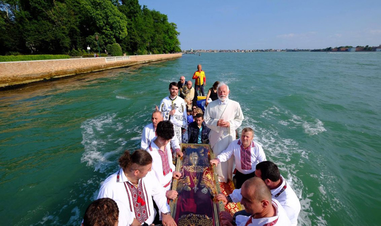 Ρουμάνοι Ορθόδοξοι μαζί με Ρωμαιοκαθολικούς πιστούς συνόδευσαν το ιερό κειμήλιο μέσα από τα κανάλια της Βενετίας ώστε όλα να είναι έτοιμα για να παραδοθεί με κάθε μεγαλοπρέπεια η Αγία στην Εκκλησία της Ελλάδος.