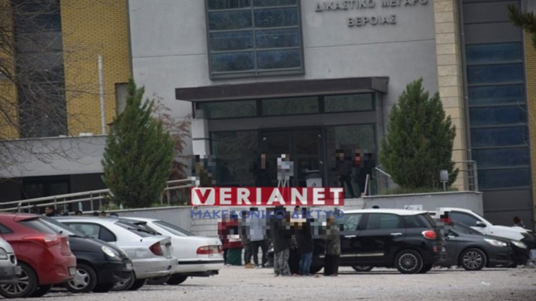 Κατά την προσαγωγή τους και μέχρι της αποχώρηση τους, έξω από το δικαστικό μέγαρο Βέροιας ήταν συγκεντρωμένοι αρκετοί ΡΟΜΑ, συγγενείς πιθανόν των δύο δραστών.