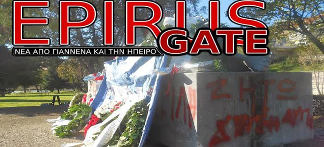 Σύμφωνα με το epirusgate, με κόκκινο σπρέι έφτιαξαν κέλτικους σταυρούς, σύμβολο που χρησιμοποιούν οι νεοναζί, και έγραψαν «Ζήτω η χούντα» και «Ζήτω η Χρυσή Αυγή».