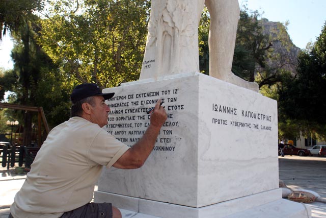 Με μαύρη μπογιά έβαψαν άγνωστοι τη βάση του ανδριάντα του Ιωάννη Καποδίστρια στο Ναύπλιο την Παρασκευή.