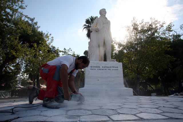 Το άγαλμα του πρώτου κυβερνήτη της Ελλάδας τοποθετήθηκε το 1933 στην ομώνυμη πλατεία και είναι έργο του σπουδαίου γλύπτη Μ. Τόμπρου.