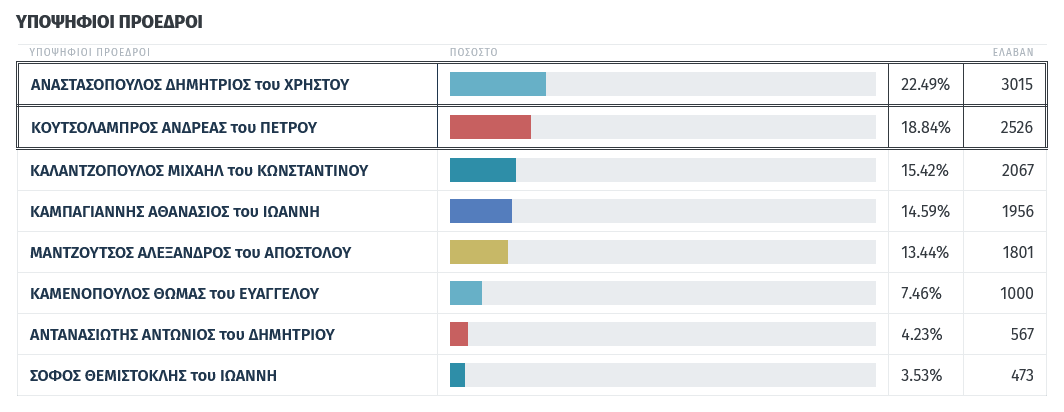 Επειδή κανείς εκ των υποψηφίων για τη θέση του Προέδρου δεν συγκέντρωσε το 50% + 1 των εγκύρων ψηφοδελτίων, θα επαναληφθεί η ψηφοφορία ανάμεσα στους δύο πρώτους, δηλαδή ανάμεσα στον Δ. Αναστασόπουλο και τον Α. Κουτσόλαμπρο την επόμενη Κυριακή και Δευτέρα 7 και 8 Δεκεμβρίου 2025.