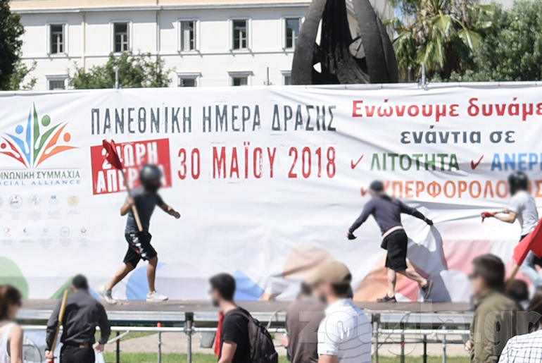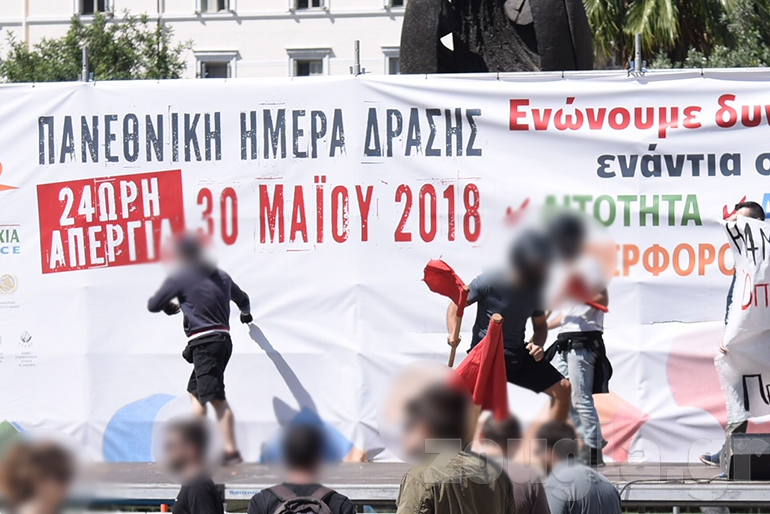 Video: Έσκισαν το πανό της εξέδρας στην πλατεία Κλαυθμώνος