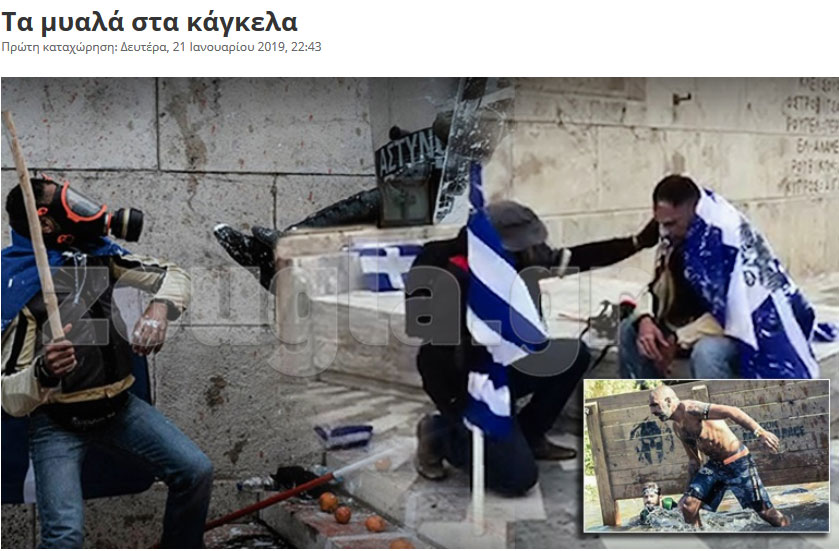 Αν αυτό ισχύει, τότε το οπτικό υλικό με τον Γιάννη Λαγό στον Άγνωστο Στρατιώτη να περιφέρεται ανάμεσα στους «ράμπο» που κατάφεραν να τα κάνουν γυαλιά-καρφιά κατά τη διάρκεια του συλλαλητηρίου έχει κάποια χρησιμότητα.