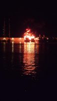 Στην κατάσβεση συμμετείχαν εννέα οχήματα της πυροσβεστικής υπηρεσίας, καθώς και ένα πλωτό πυροσβεστικό όχημα.