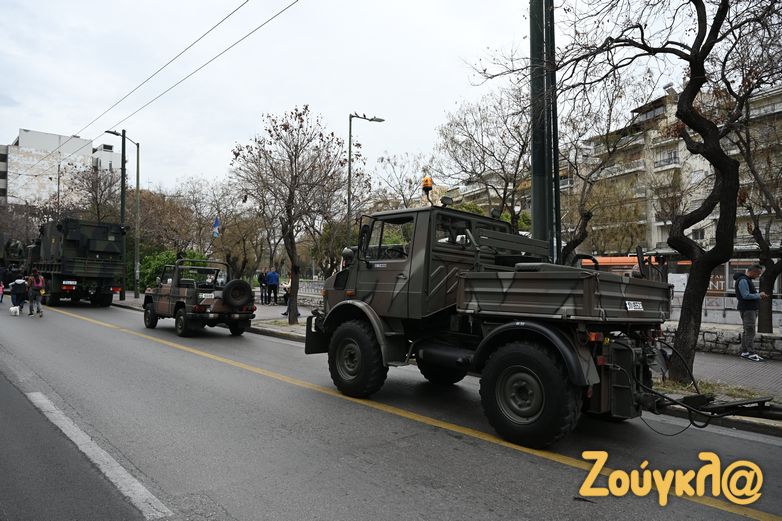 Στη συνέχεια, παρέλασε φάλαγγα μηχανοκίνητων οχημάτων του Στρατού Ξηράς όπου, μεταξύ άλλων, συμμετείχαν τεθωρακισμένα οχήματα μεταφοράς προσωπικού Μ113, οχήματα Hummer με φορείς Α-Τ Milan και με φορείς Α-Τ Kornet-E, Marder 1A3, oμάδα ναρκαλιείας, ομάδες Διασωστών, μοίρα Πυροβολικού Μάχης, πυροβολαρχίες κατευθυνόμενων βλημάτων Stinger – Asrad και Hawk.