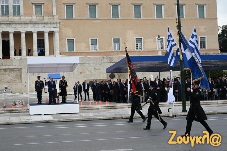 Πλήθος κόσμου συγκεντρώθηκε κατά μήκος της λεωφόρου Αμαλίας, της πλατείας Συντάγματος και της Πανεπιστημίου, προκειμένου να παρακολουθήσει τα αγήματα του Ελληνικού Στρατού και τα μηχανοκίνητα τμήματα των Ενόπλων Δυνάμεων, να αποδίδουν φόρο τιμής στους αγωνιστές που έδωσαν το αίμα τους για την εθνική μας ανεξαρτησία.