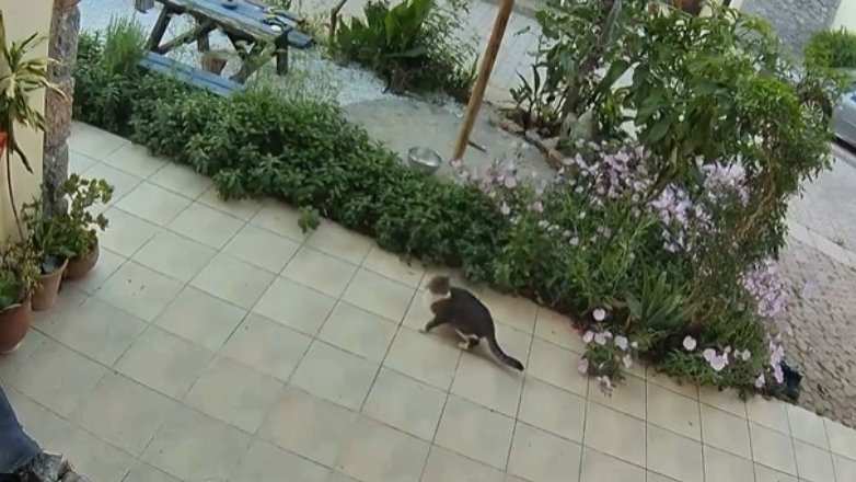 Δευτερόλεπτα μετά -όταν η γη αρχίζει να τρέμει- η γάτα κοιτάζει γύρω της, σαν να ψάχνει τι προκαλεί την δόνηση.