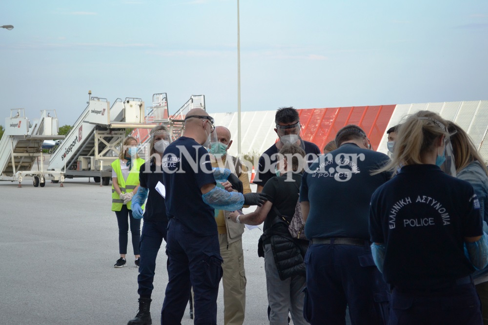 Αμέσως, πενήντα επιβάτες της πτήσης κατευθύνονται σε ειδική πύλη του αεροδρομίου για να υποβληθούν στο υποχρεωτικό τεστ ανίχνευσης κορωνοϊού.