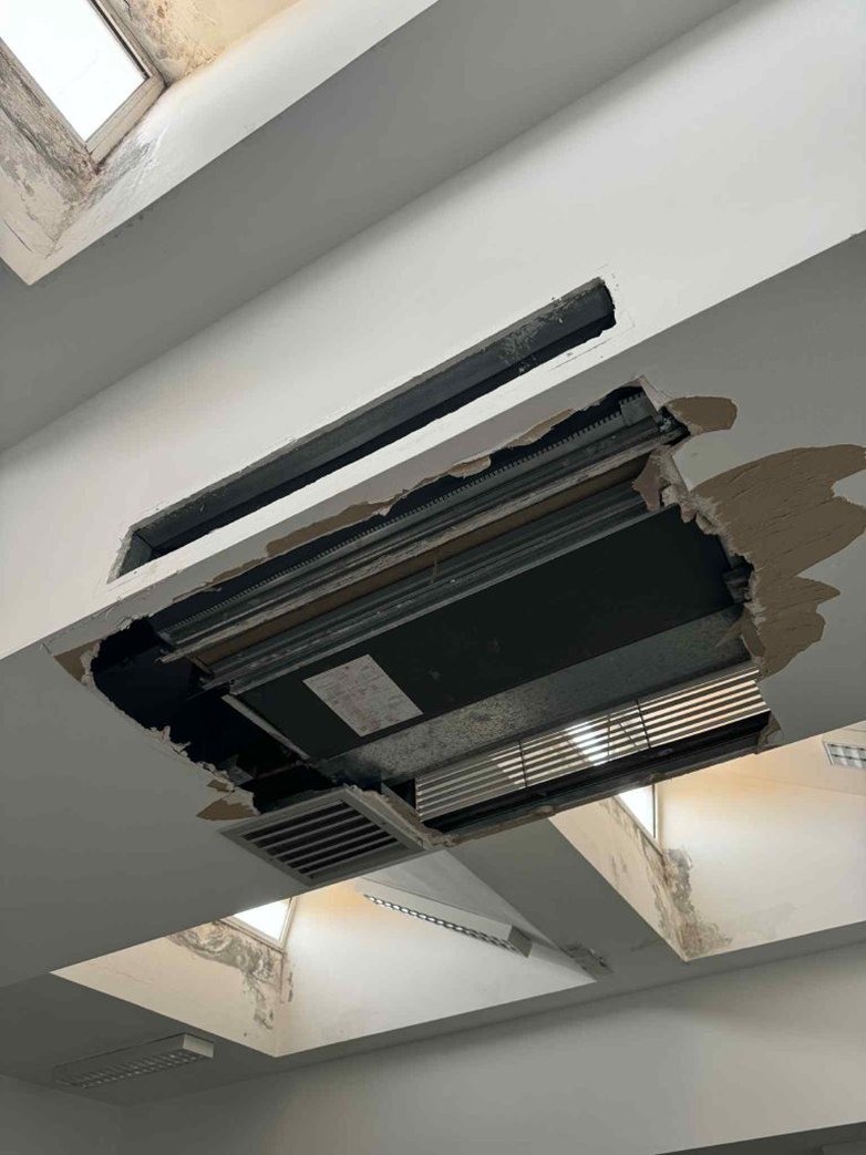Σύμφωνα με όσα αναφέρουν φοιτητές που απέστειλαν και το φωτογραφικό υλικό, νερά εισέβαλαν σε διαδρόμους και εργαστήρια, με αποτέλεσμα να βραχούν και να κινδυνεύσουν μηχανήματα υψηλού κόστους, αξίας χιλιάδων ευρώ.