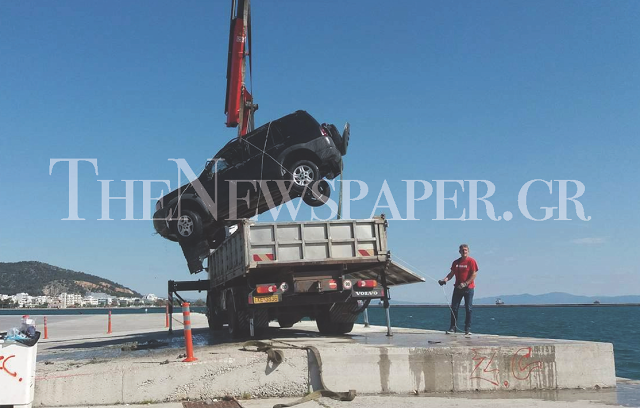 Δύτης, ιδιωτικό συνεργείο, αλλά και άνδρες του Λιμενικού Σώματος συνέδραμαν στην ανέλκυση ενός τζιπ που έπεσε χθες στη θάλασσα εντός του επιβατικού λιμένα του Βόλου.