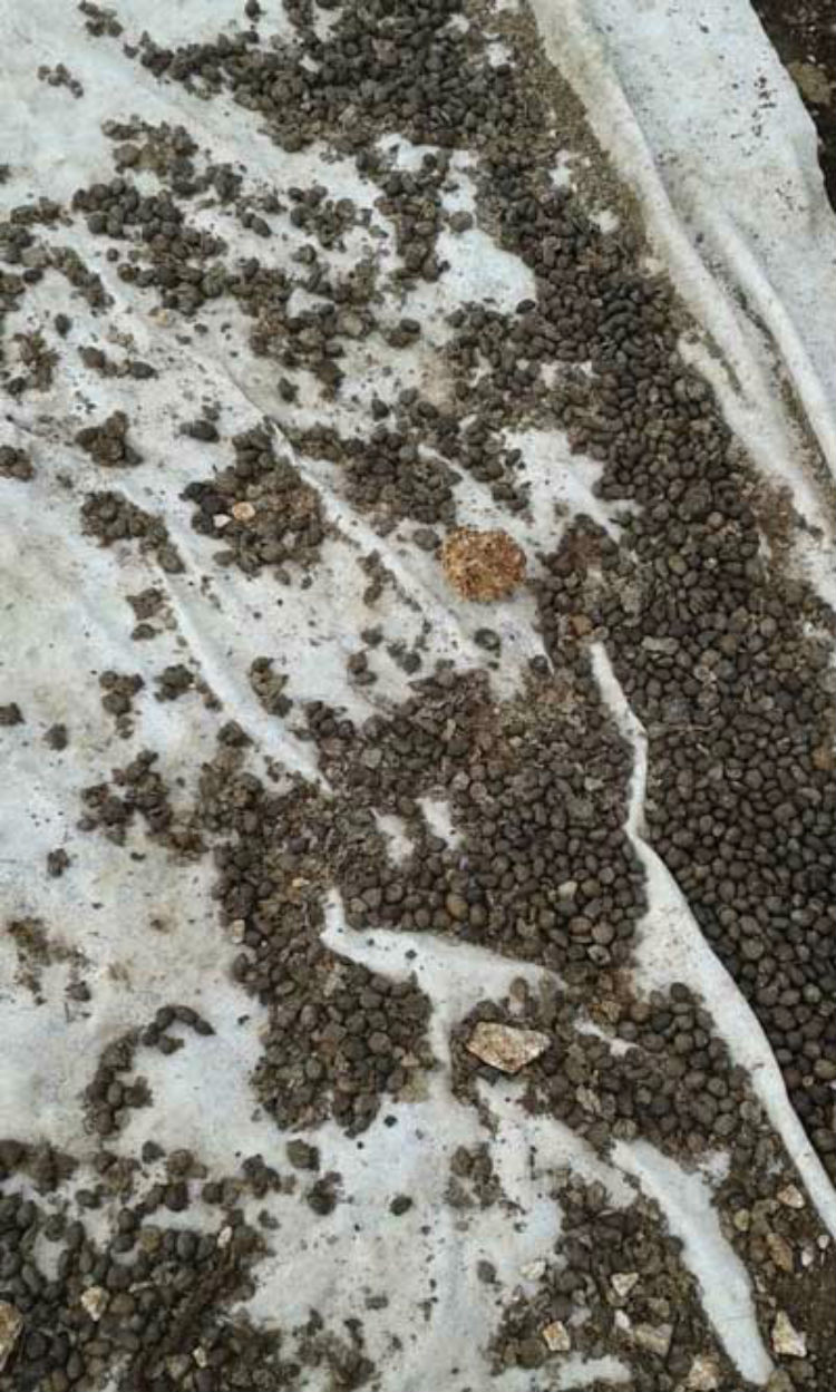 Όπως αποκαλύπτουν τα φωτογραφικά στιγμιότυπα, το προστατευτικό ύφασμα που έχουν τοποθετήσει οι αρχαιολόγοι στο κοίλο του αρχαίου θεάτρου έχει καλυφθεί από τα περιττώματα των συμπαθών ζώων.