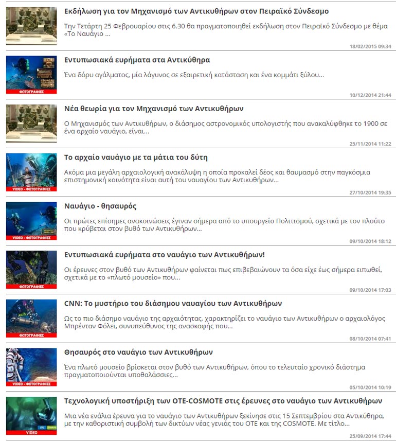 Η Εφορεία Εναλίων Αρχαιοτήτων, υποστηριζόμενη από το Αμερικάνικο Ωκεανογραφικό Ινστιτούτο Woods Hole, ολοκλήρωσε την ψηφιακή υποβρύχια αποτύπωση και τρισδιάστατη απεικόνιση ακριβείας στην περιοχή του Ναυαγίου των Αντικυθήρων στο διάστημα από τις 9 μέχρι τις 16 Ιουνίου. Στην περυσινή αντίστοιχη αποτύπωση είχε καταγραφεί η περιοχή της θέσης του ναυαγίου απ’ όπου ανελκύστηκαν το 1900 τα περίφημα γλυπτά και ο Μηχανισμός των Αντικυθήρων (70 x 30 μ. περίπου).