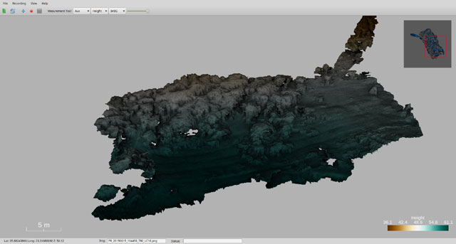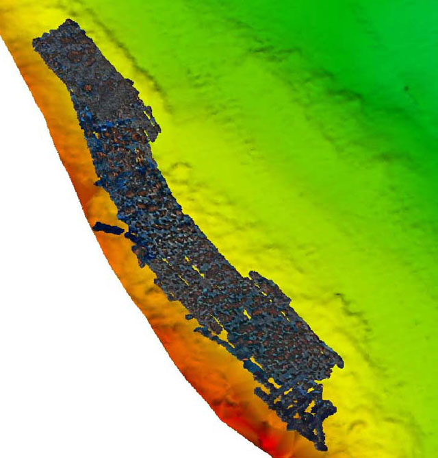 Άποψη της τρισδιάστατης αποτύπωσης, όπου φαίνεται το έντονο ανάγλυφο του βυθού