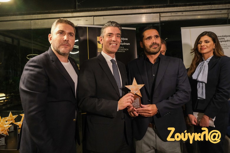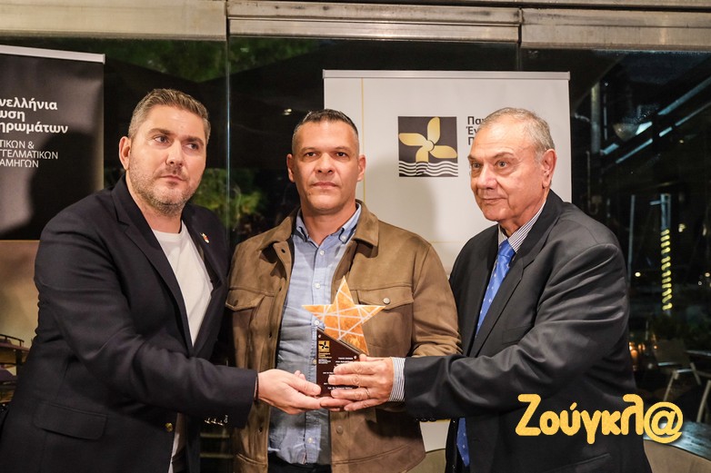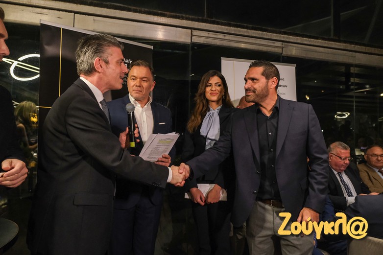 Ο Ιωάννης Παπαθανασίου την στιγμή που τον βραβεύει ο Γιώργος Βάλλης