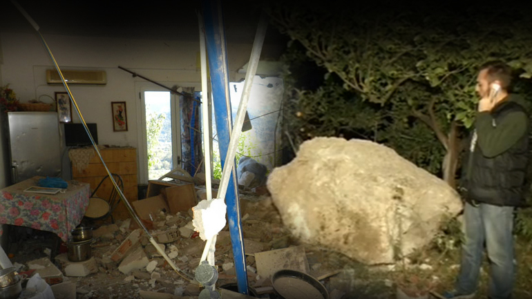 Όπως φαίνεται στα πλάνα της ηλεκτρονικής μας εφημερίδας, ο βράχος που αποκολλήθηκε από την σεισμική δόνηση και κατρακυλώντας από την πλαγιά έφτασε ως το σπίτι άνοιξε μια ολόκληρη τρύπα σε έναν από τους τοίχους του κτίσματος.