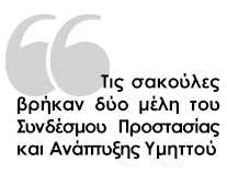 Τις σακούλες βρήκαν περίπου στις 12.30 το μεσημέρι της Τετάρτης δύο μέλη του Συνδέσμου Προστασίας και Ανάπτυξης Υμηττού.