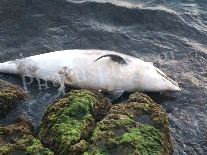 Νεκρό βρέθηκε σήμερα το απόγευμα δελφίνι στα βράχια της Πειραϊκής. Σύμφωνα με κατοίκους της περιοχής το άτυχο θηλαστικό εμφανιζόταν επί σειρά ημερών στη θαλάσσια περιοχή κοντά στη σχολή ναυτικών δοκίμων, ενώ όπως μαρτυρούν και οι φωτογραφίες, το δελφίνι ήταν νεκρό στα βράχια για πάνω από μια ημέρα. Λίγο μετά της 21:00 στο σημείο έφτασε το λιμενικό.Σημειώνεται πως η κυκλοφορία είχε σχεδόν διακοπεί στην Πειραϊκή αφού δεν ήταν λίγοι αυτοί που έσπευσαν να δουν το νεκρό δελφίνι.