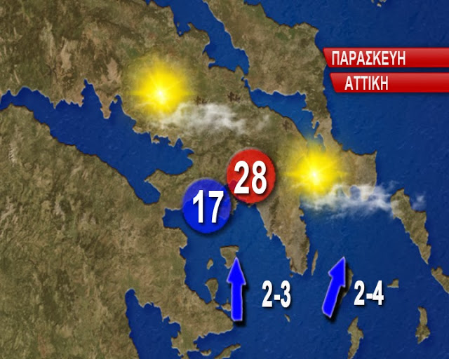 Ζεστό και υγρό καιρό με παροδικές νεφώσεις και περιορισμένη τοπικά ορατότητα θα έχει η Αττική. Η θερμοκρασία θα φθάσει τους 30 βαθμούς Κελσίου και οι άνεμοι θα πνέουν ασθενείς.