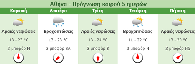 Πρόγνωση καιρού πέντε ημερών