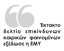 Έκτακτο δελτίο επικίνδυνων καιρικών φαινομένων εξέδωσε για σήμερα η Εθνική Μετεωρολογική Υπηρεσία.