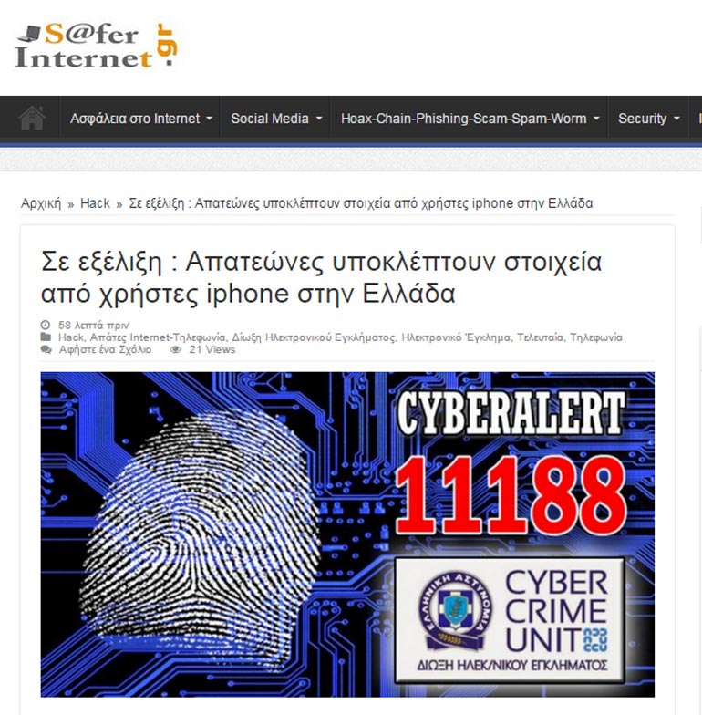 «Στέλνονται μηνύματα τα οποία σε καλούν να πατήσεις πάνω σε Link συγκεκριμένης διαφημιστικής ιστοσελίδας. Από τη στιγμή που ο χρήστης του κινητού μπει σε αυτόν τον ιστότοπο, έχασε τους κωδικούς του στο icloud, ενώ το κινητό του πέρασε στα χέρια του χάκερ».