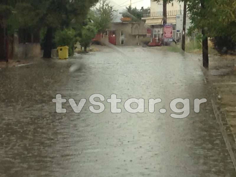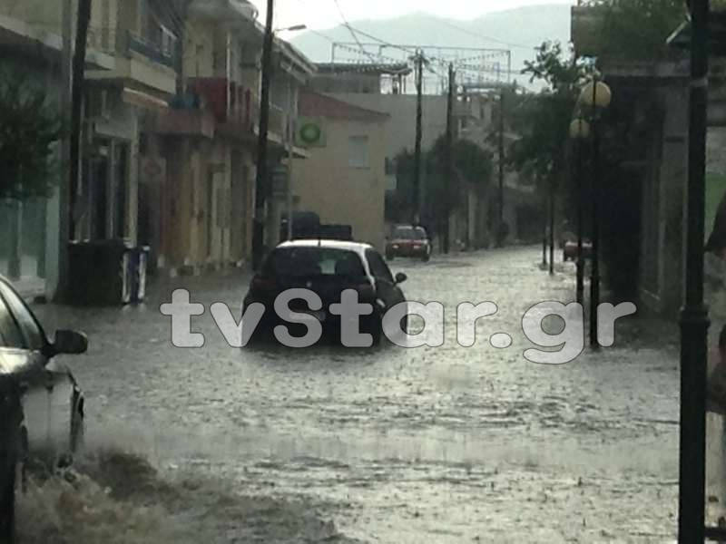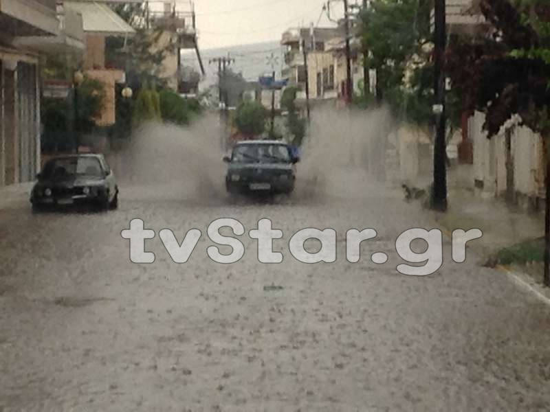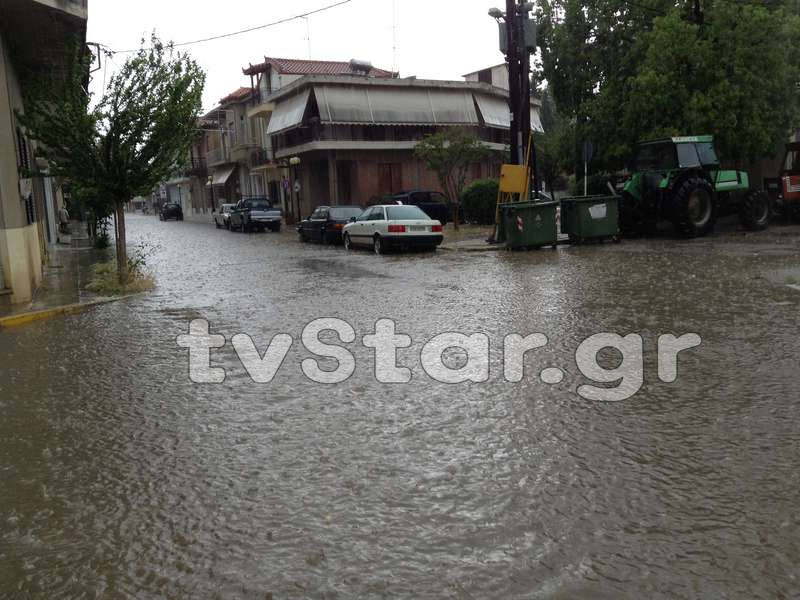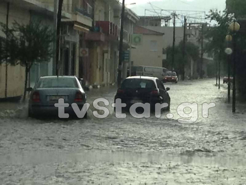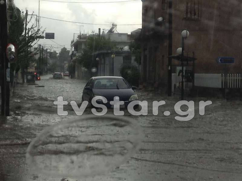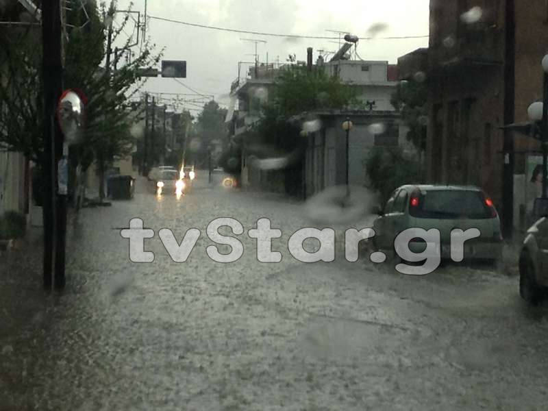 Παρόλο που διήρκεσαν περίπου 20 λεπτά, οι κεντρικοί δρόμοι της πόλης πλημμύρισαν, με αποτέλεσμα τα οχήματα να κινούνται με δυσκολία.