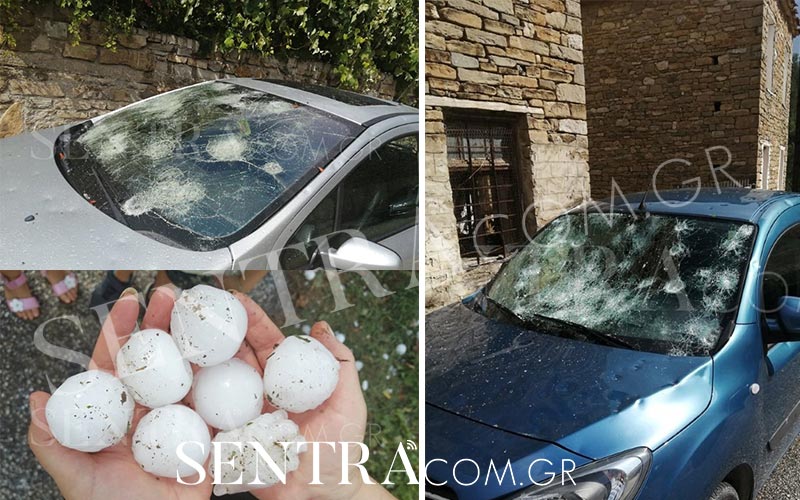Μάλιστα σε πολλά αυτοκίνητα, έσπασαν τα τζάμια ή έχουν βουλιάξει τα αμαξώματα από το βάρος, το μέγεθος και την δύναμη που έπεφτε το χαλάζι. Μέχρι στιγμής δεν υπάρχει εκτίμηση για της μεγάλες ζημιές που έχουν προκληθεί στις καλλιέργειες στην περιοχή.